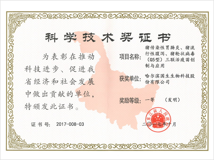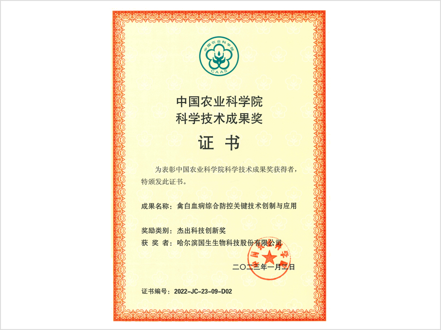 公司简介 荣誉资质 机构设置 联系我们 科学技术奖 一等(发明) 猪传染性胃肠... 神农中华农业科技奖 三等奖 猪传染性胃肠... 科学技术奖 一等(进步) 禽重要免疫抑制... 规模化牛场主要呼吸道传染病防控技术及产品... 国家技术发明奖证书 杰出科技创新奖 禽白血病综合防控关键技术... < 123456 > 您可能感兴趣的! 公司简介 行业内唯一拥有专门从事诊断制品生产和销售的GMP生产车间的企业 销售网络 一张描绘着国生生物的扩展蓝图延伸开来 专家团队 每一种药物和疫苗背后,都有一支业内顶尖的研发团队。